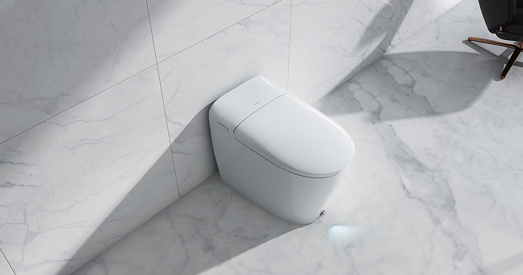 該項目定制的怡和YY60智能馬桶,智能模塊部位向上揚起作為主要特征,引導視線從后向前推進,同時設計也是從后向前延伸,后端由圓滑逐漸收縮,越來越硬朗一直延伸到前端,側面的操作按鈕設計為長條形狀與整體的視覺推進路線契合在一起,巧妙的運用了視覺推進路線。使整體前后對比鮮明、各元素結合緊密。