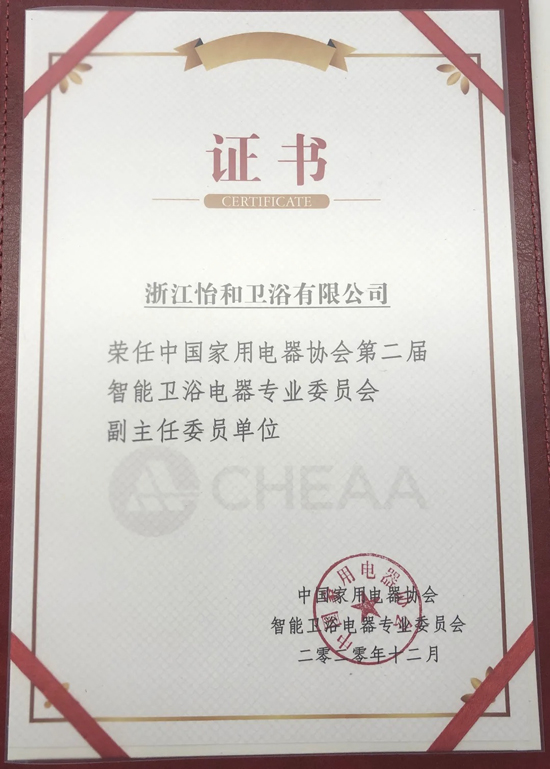 會上,怡和衛(wèi)浴榮任中國家用電器協(xié)會智能衛(wèi)浴電器專業(yè)委員會副主任委員單位。值得一提的是,自2015年智能衛(wèi)浴電器專業(yè)委員會成立之初,怡和衛(wèi)浴就已榮任副主任委員單位。