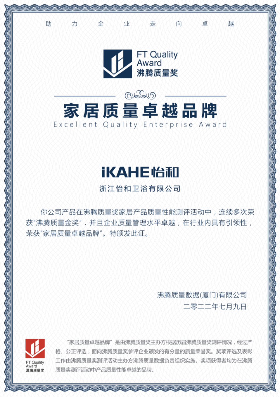 近日,浙江怡和衛(wèi)浴在沸騰質(zhì)量獎頒獎盛典上,憑借穩(wěn)定的質(zhì)量保障和出色的產(chǎn)品性能,從幾百個家居品牌之中脫穎而出,一舉斬獲“家居質(zhì)量卓越品牌”。