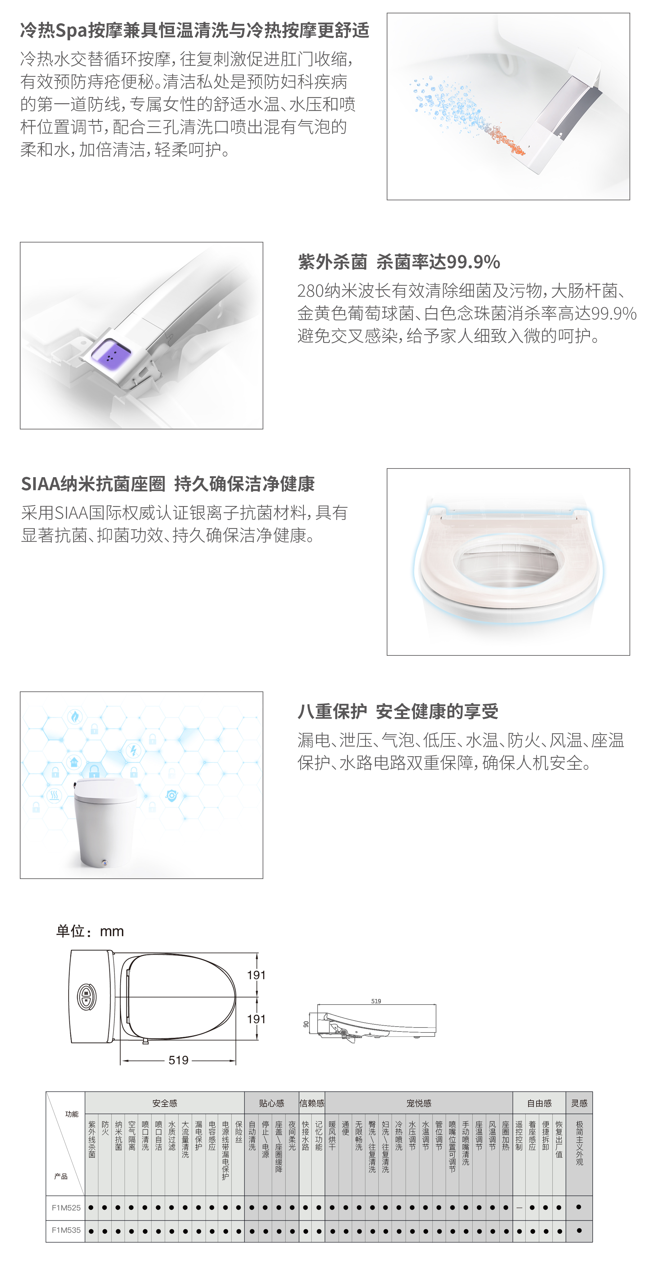 蝶翼纖薄智能馬桶蓋,真正集技術(shù)與先驅(qū)設(shè)計于一體,率先引入醫(yī)用級紫外線噴頭殺菌技術(shù),能高效殺滅各類細(xì)菌,給予家人細(xì)致入微的呵護(hù),放心暢享健康洗護(hù)的愉悅。座圈體感自適應(yīng),春夏秋冬,隨氣溫變化智能感知皮膚溫度,通過座圈自適應(yīng)調(diào)整人體最佳舒適度,得心應(yīng)手。