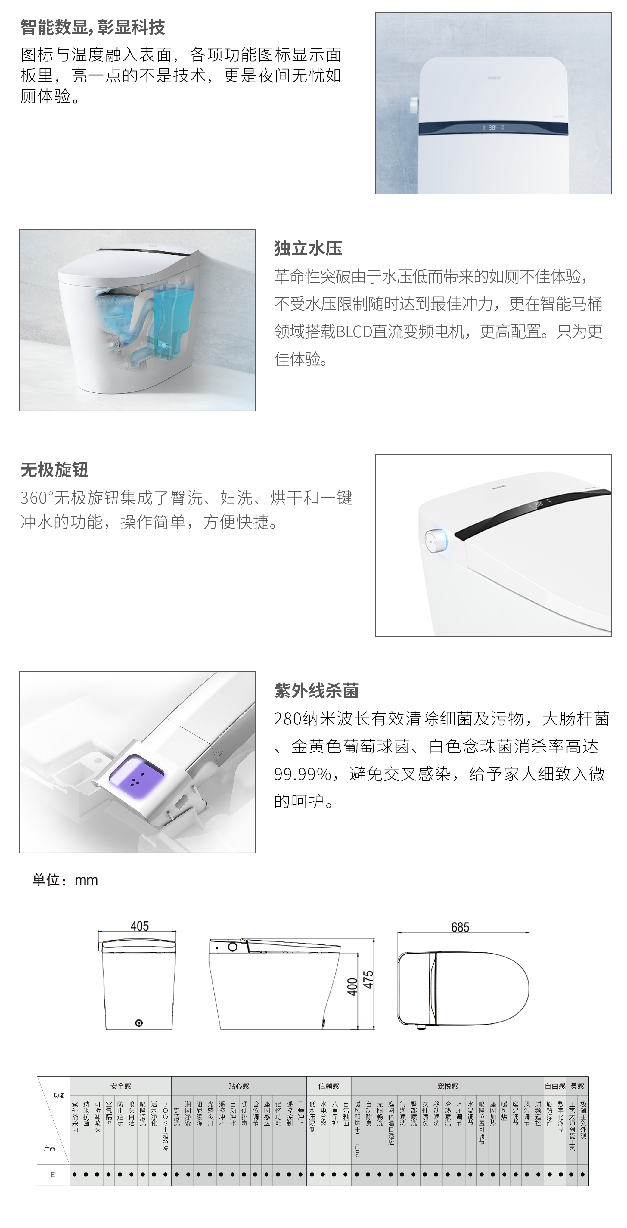 通體白色外觀,流暢簡約線條勾勒出時尚的科技感,LED黑色數(shù)碼顯示座溫、水溫、貼心展示產(chǎn)品運行狀態(tài),眾多人性化設(shè)計,打造簡潔炫酷的私享空間。