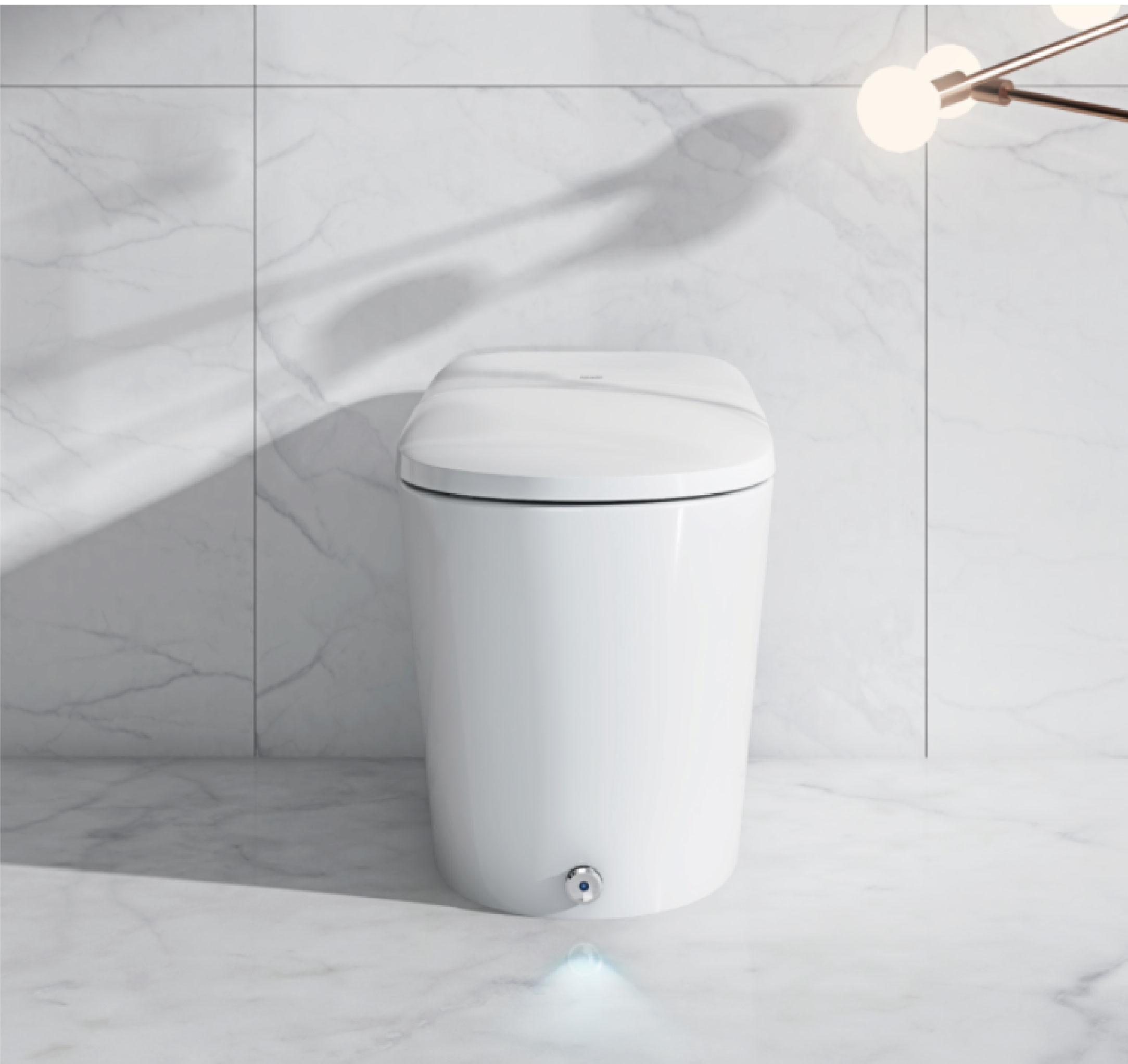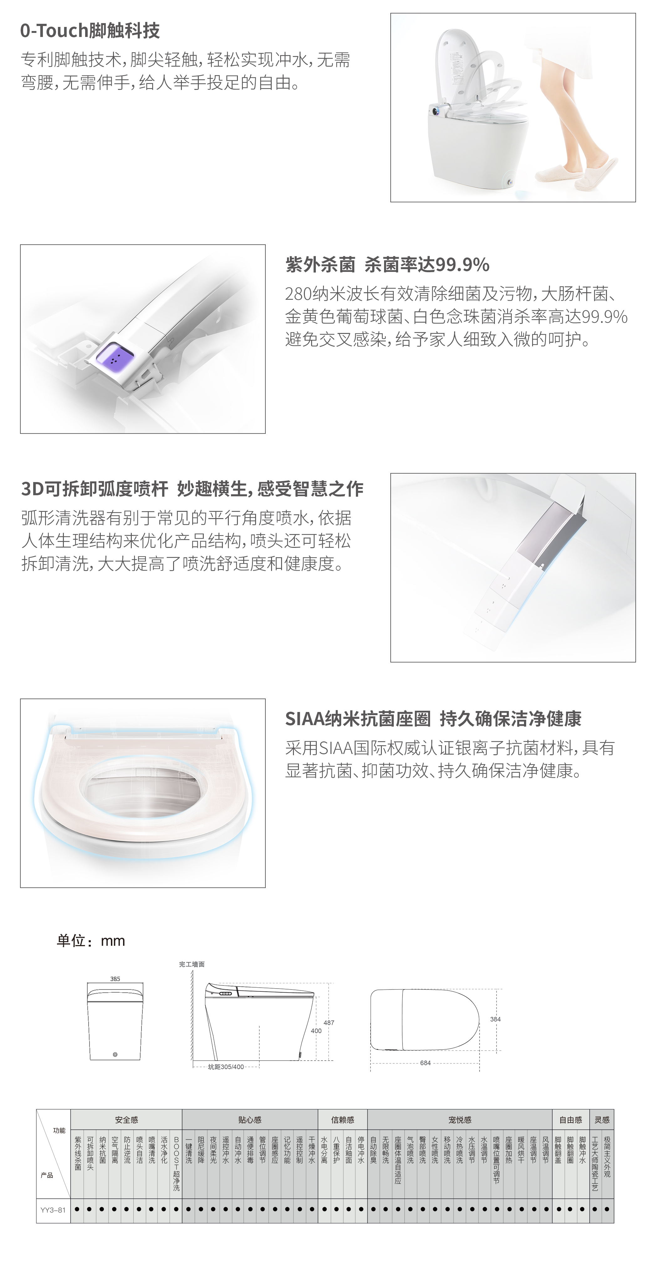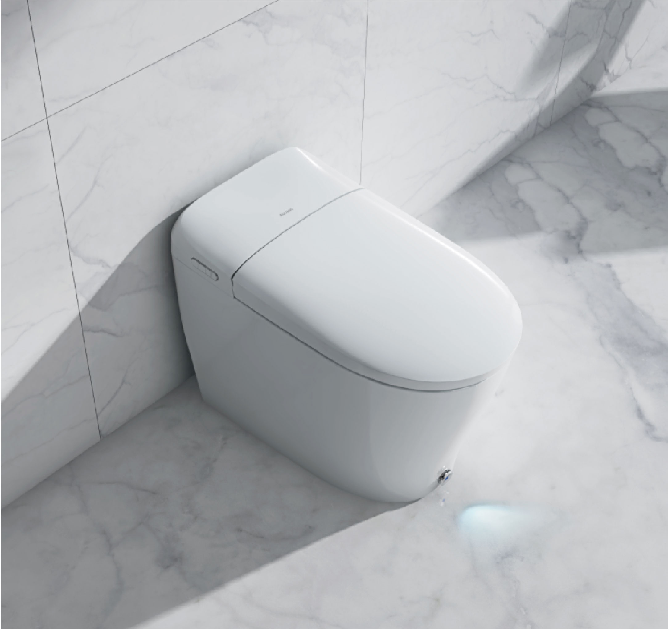 馬桶智能模塊部位向上揚起作為主要特征,引導(dǎo)視線從后向前推進,同時設(shè)計也是從后向前延伸,后端由圓滑逐漸收縮,越來越硬朗一直延伸到前端,側(cè)面的操作按鈕設(shè)計為長條形狀與整體的視覺推進路線契合在一起,巧妙的運用了視覺推進路線。使整體前后對比鮮明、各元素結(jié)合緊密。